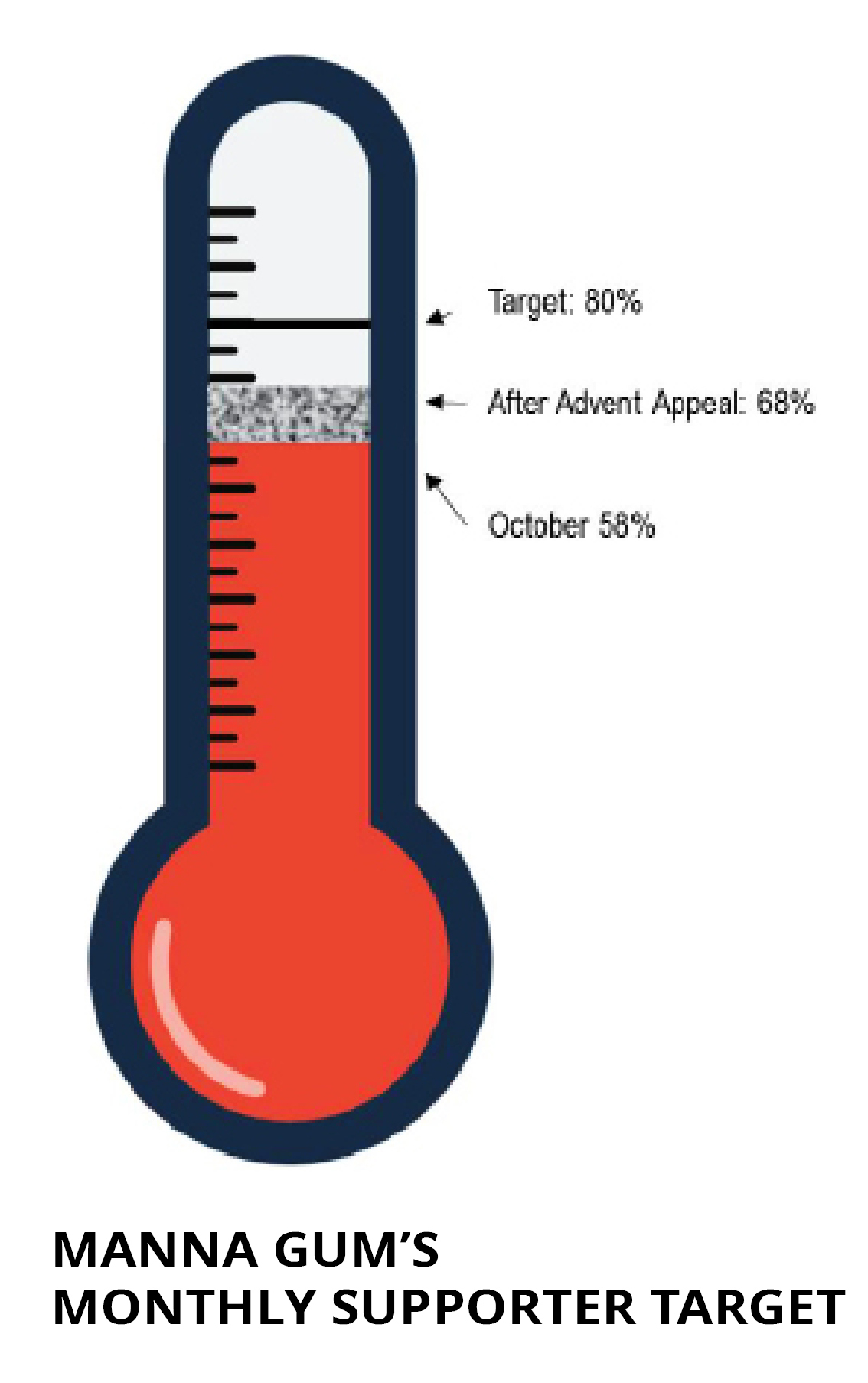 We are now back on a strong financial footing for the coming year, but we still need to grow our supporter base in order to be sustainable, and even more so because we are beginning to think about ways in which we would like to expand the work further! Our short-term goal is for 80% of our annual expenses to be covered by regular monthly supporters. We bumped closer to this target with the Advent Appeal but we still have a way to go.