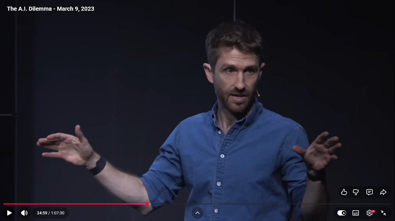 - ‘The A.I. Dilemma’, Centre for Humane Technology (06/04/23) — a bit dated, but still an excellent introduction to the stakes.