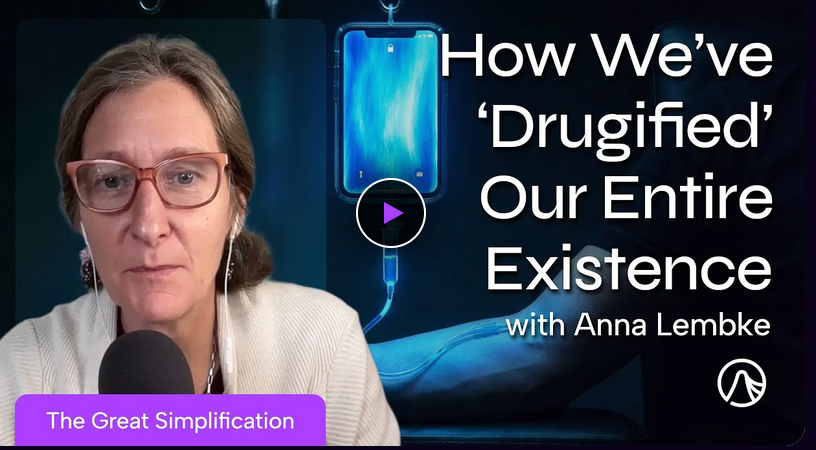 - The Great Simplification — our global predicament from a systems perspective, connecting the dots of energy, economy, ecology, human behaviour, and more.