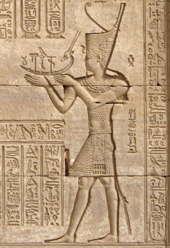 The Emperor Trajan depicted in the Egyptian style making offerings to the Egyptian gods. Dendera Temple complex, Egypt. |