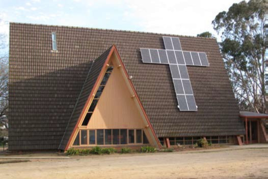 Many churches have solar panels, and several even have solar panel crosses, such as the one at O’Connor Uniting Church in the ACT.