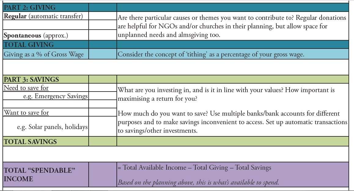 Money is an immensely powerful spiritual force, so it’s important to consider how and to what extent it shapes our lives. Our faith calls us to consider how we steward God’s resources, to reflect on the struggle of worshipping God or money, to contribute to justice, and to participate in God’s message of abundant life for all. Budgeting holistically can help us practise the basics that Jesus advocated to break the power of money: renunciation, generosity and gratitude.